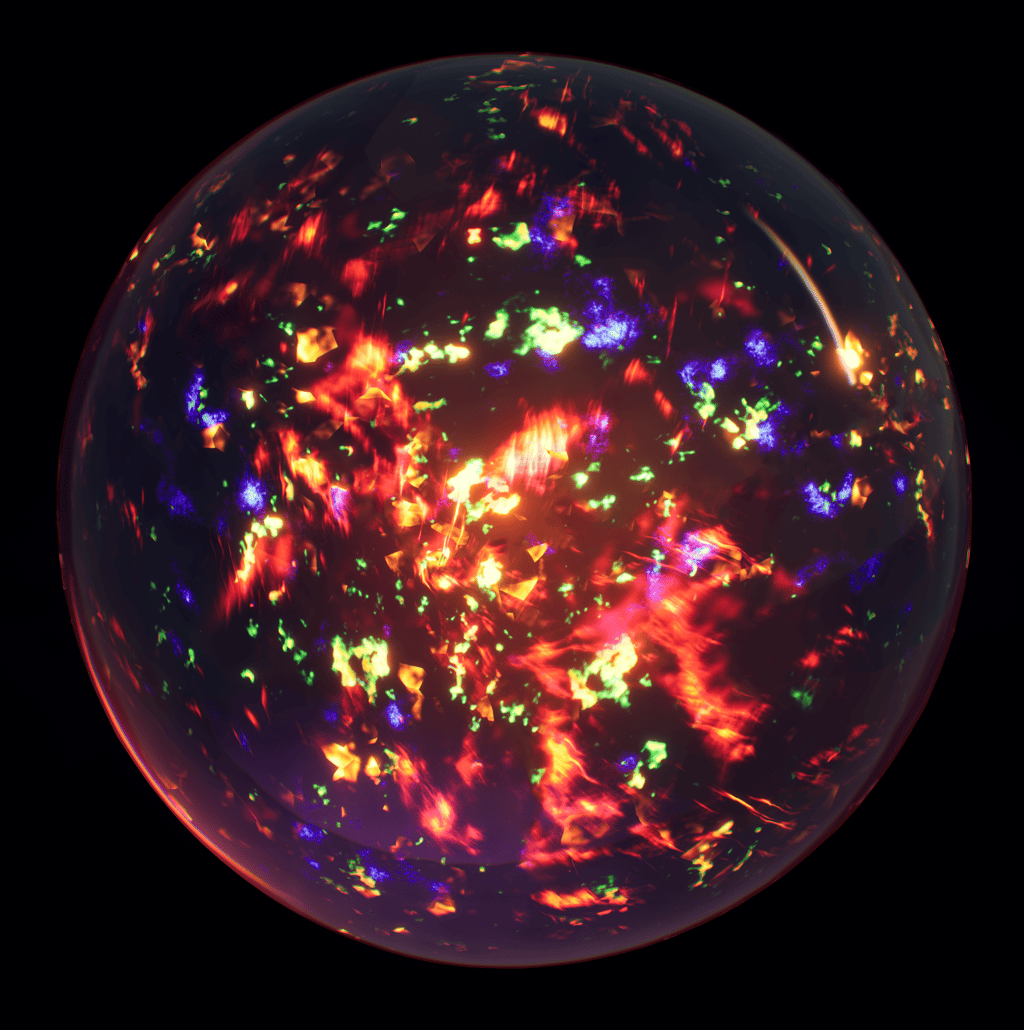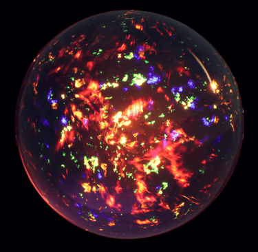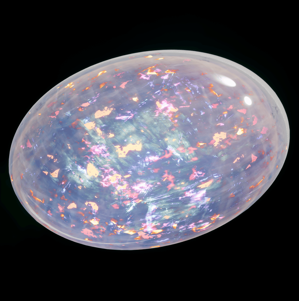 Each mesh was modeled in Maya, taking inspiration from the opals as described by Houghton, a reference photograph of the blue opal that he used as inspiration, and the music as described and played by the LAGQ. I had some in-person creation sessions with my father (the LAGQ member spearheading this project), quickly iterating on the shader, lighting, etc in realtime.