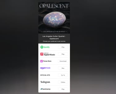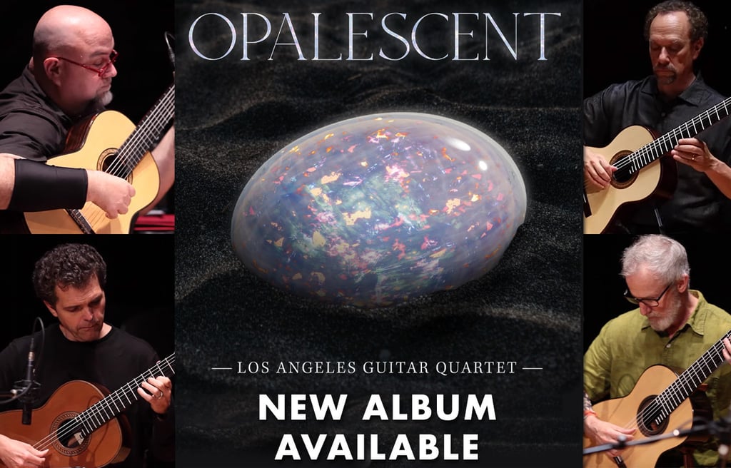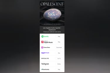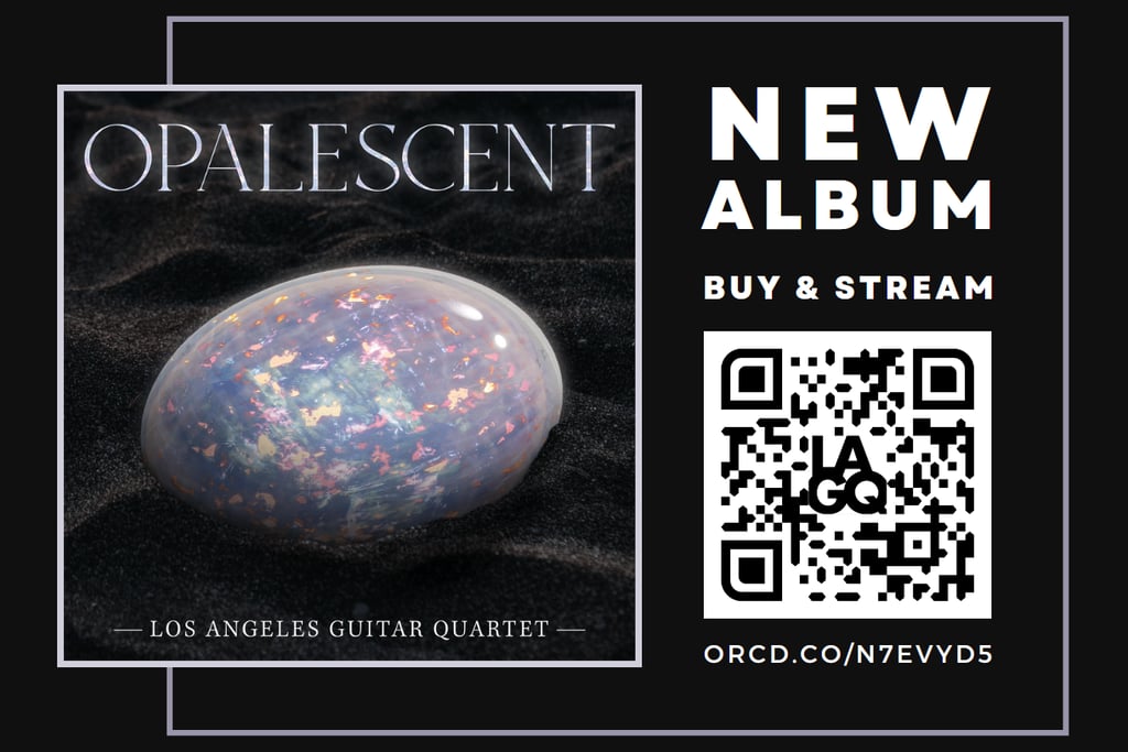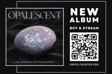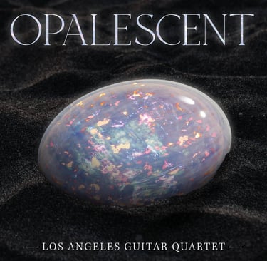 In early 2022, I collaborated with the Grammy-winning Los Angeles Guitar Quartet and graphic design team to create the album art and promotional materials for the album "Opalescent" - described by Guitar Salon International as "reflect[ing] the intermingling of sound and light." The opal theme is drawn from the movements by Australian synesthetic composer Phillip Houghton - each is named for and inspired by an opal whose presence he captures in his music.